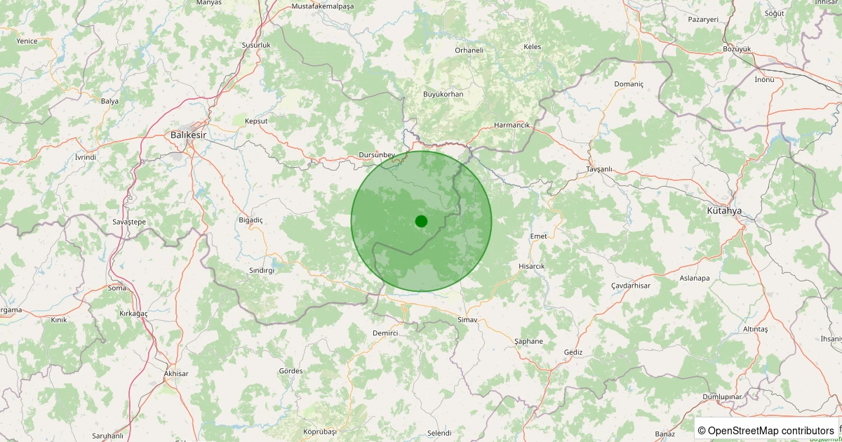 Son 7 gün içinde Dursunbey - Yassıören noktasından 100 km yarıçap içerisinde meydana gelen diğer depremler: