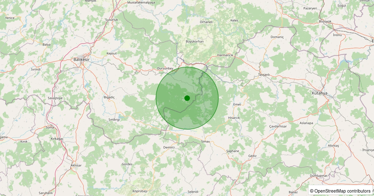 Son bir hafta içerisinde Balıkesir şehri Dursunbey - Yassıören noktasından 100 km yarıçap içerisinde toplamda 1153 deprem kaydedilmiştir. Bu depremlerden en büyüğü 3.5 büyüklüğünde ve en sığ odaklısı 0.00 kilometre derinlikte gerçekleşmiştir.