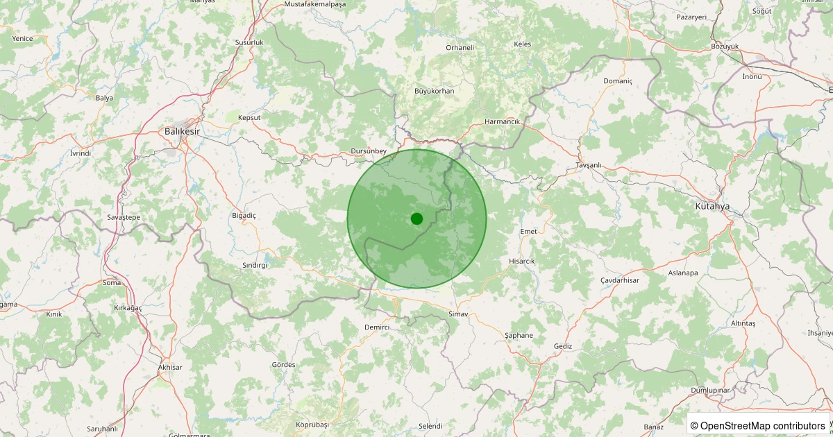 Son 7 gün içinde Dursunbey - Yassıören noktasından 100 km yarıçap içerisinde meydana gelen diğer depremler: