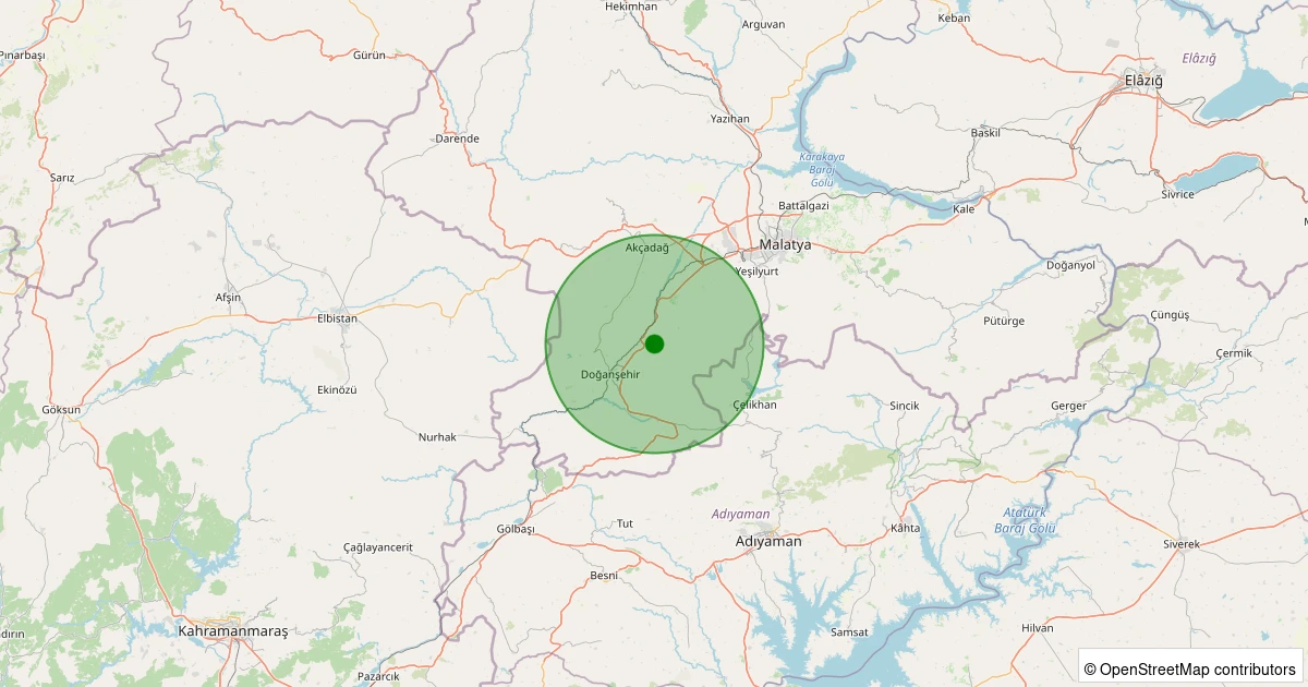 Son 7 gün içinde Doğanşehir - Eskiköy noktasından 100 km yarıçap içerisinde meydana gelen diğer depremler: