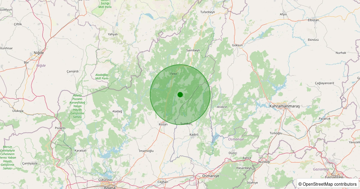 Son 7 gün içinde Kozan - Kuyubeli noktasından 100 km yarıçap içerisinde meydana gelen diğer depremler: