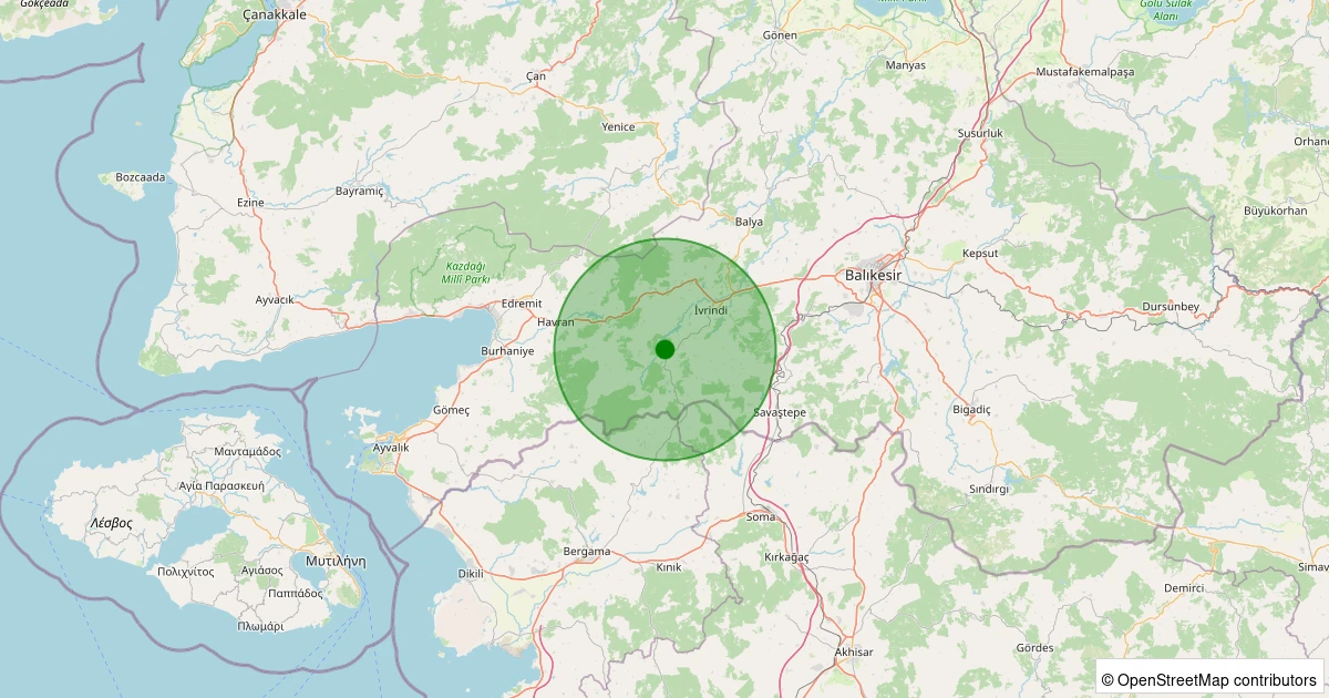 Son 7 gün içinde İvrindi - Ayaklı noktasından 100 km yarıçap içerisinde meydana gelen diğer depremler: