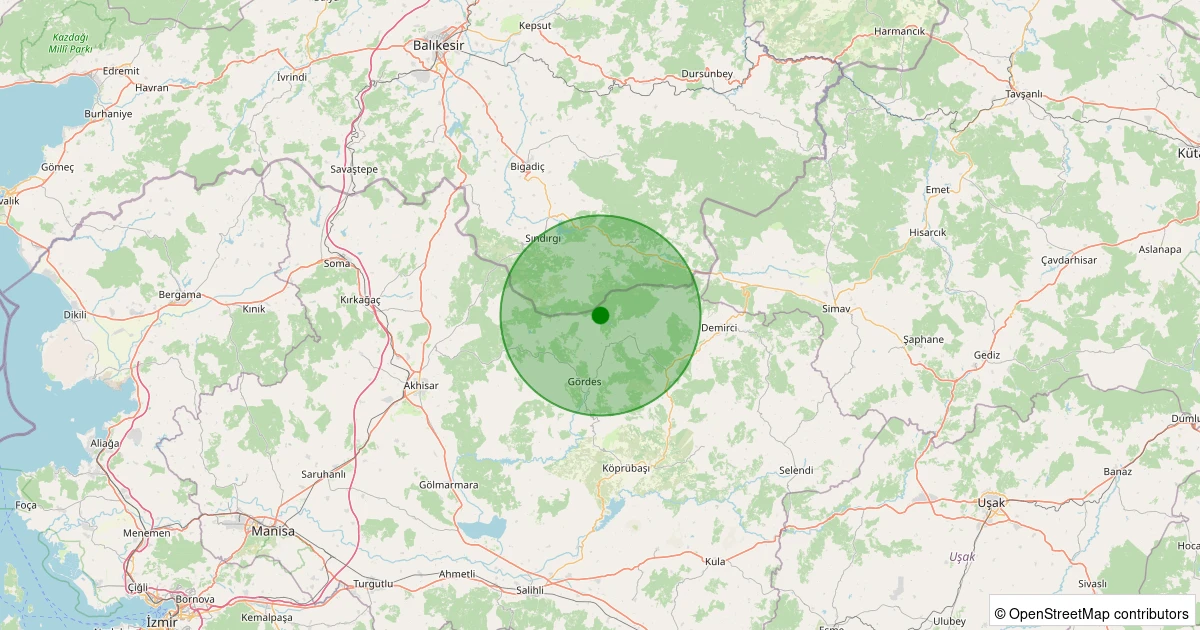 Son 7 gün içinde Gördes - Şeyhyayla noktasından 100 km yarıçap içerisinde meydana gelen diğer depremler: