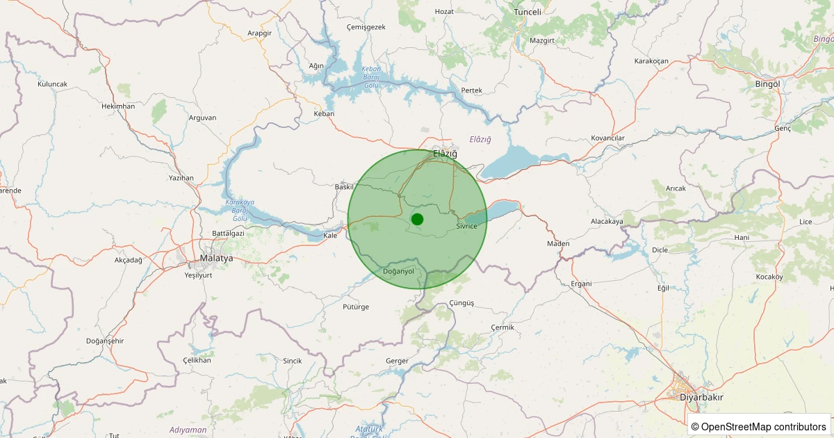 Son 7 gün içinde Sivrice - Dereboynu Köyü noktasından 100 km yarıçap içerisinde meydana gelen diğer depremler: