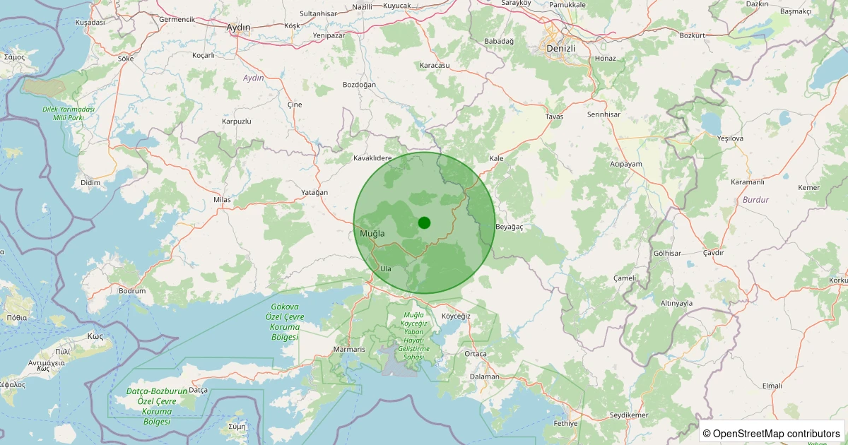 Son 7 gün içinde Menteşe - Yemişendere noktasından 100 km yarıçap içerisinde meydana gelen diğer depremler: