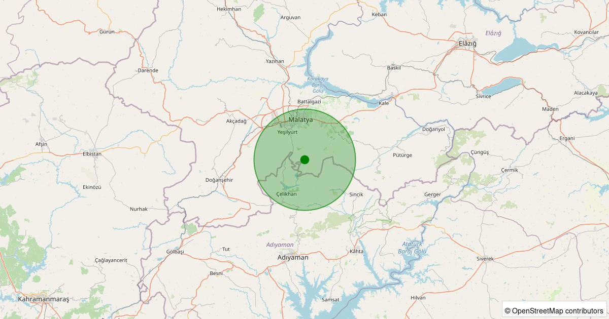 Son 7 gün içinde Yeşilyurt - Öncü noktasından 100 km yarıçap içerisinde meydana gelen diğer depremler: