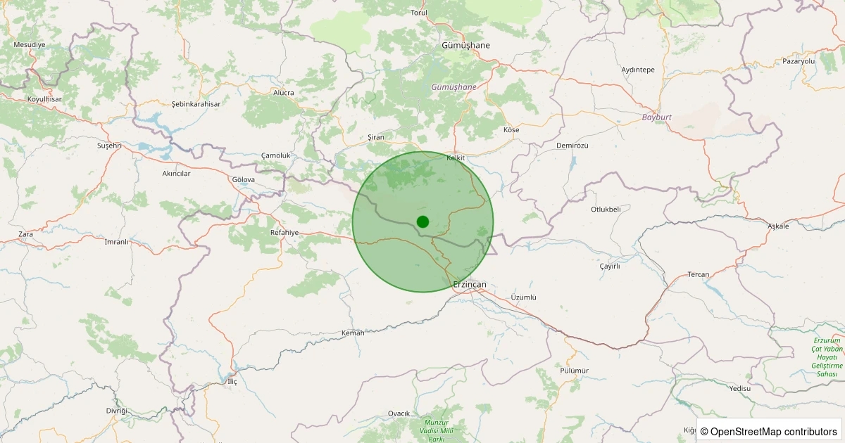 Son 7 gün içinde Kelkit - Yeşilyurt Köyü noktasından 100 km yarıçap içerisinde meydana gelen diğer depremler: