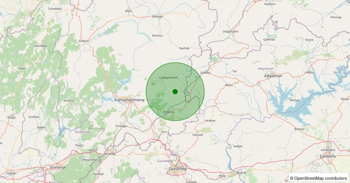 Son 7 gün içinde Pazarcık - Karaağaç noktasından 100 km yarıçap içerisinde meydana gelen diğer depremler: