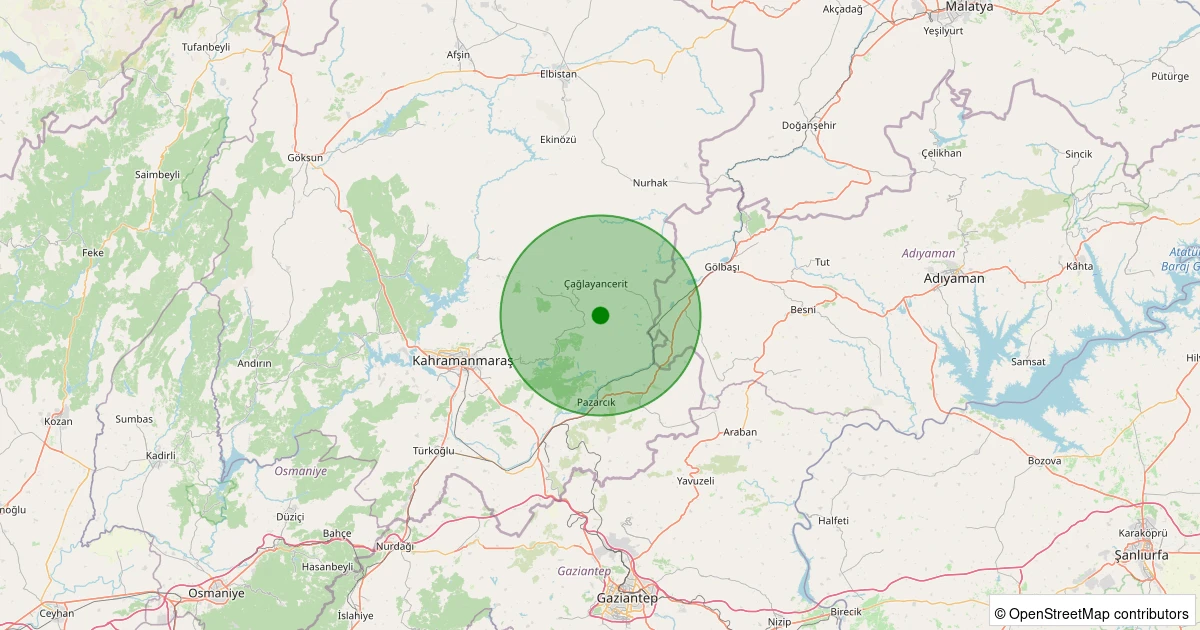 Son 7 gün içinde Çağlayancerit - Zeynepuşağı noktasından 100 km yarıçap içerisinde meydana gelen diğer depremler: