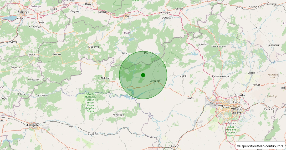 Son 7 gün içinde Beypazarı - Kozağaç noktasından 100 km yarıçap içerisinde meydana gelen diğer depremler: