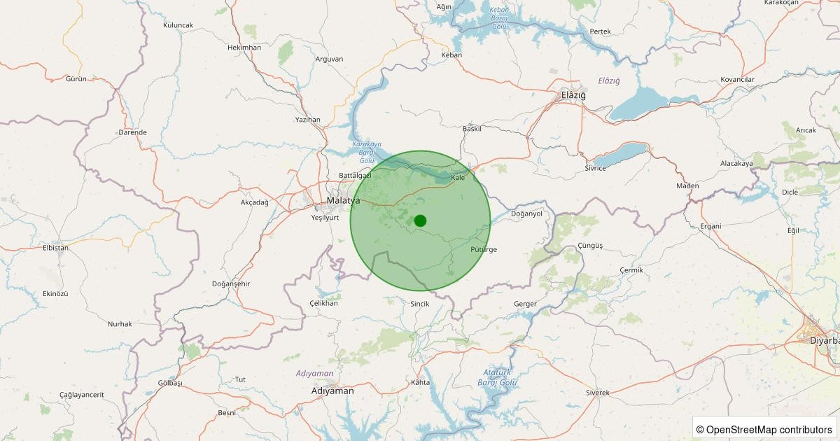 Son 7 gün içinde Battalgazi - Pelitli Köyü noktasından 100 km yarıçap içerisinde meydana gelen diğer depremler: