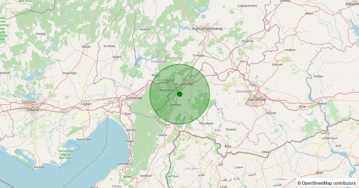 Son 7 gün içinde İslahiye - Zincirli noktasından 100 km yarıçap içerisinde meydana gelen diğer depremler: