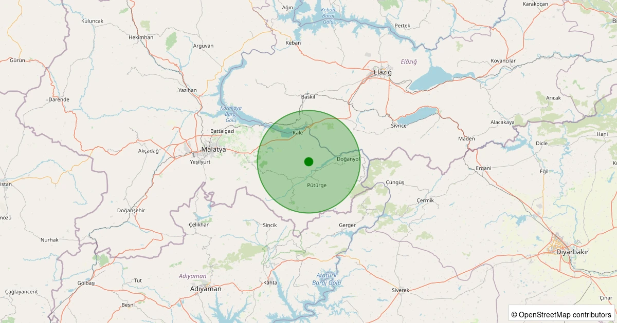 Son 7 gün içinde Pütürge - Bölükkaya Köyü noktasından 100 km yarıçap içerisinde meydana gelen diğer depremler: