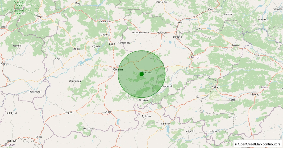 Son 7 gün içinde Mecitözü - Kuyucak Köyü noktasından 100 km yarıçap içerisinde meydana gelen diğer depremler: