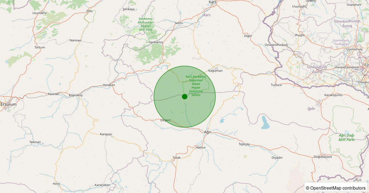 Son 7 gün içinde Kağızman - Körpınar Köyü noktasından 100 km yarıçap içerisinde meydana gelen diğer depremler: