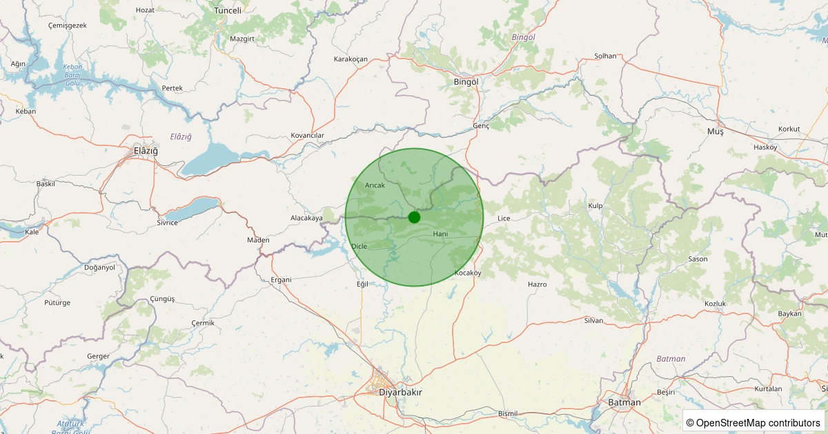 Son 7 gün içinde Arıcak - Kutludüğün noktasından 100 km yarıçap içerisinde meydana gelen diğer depremler: