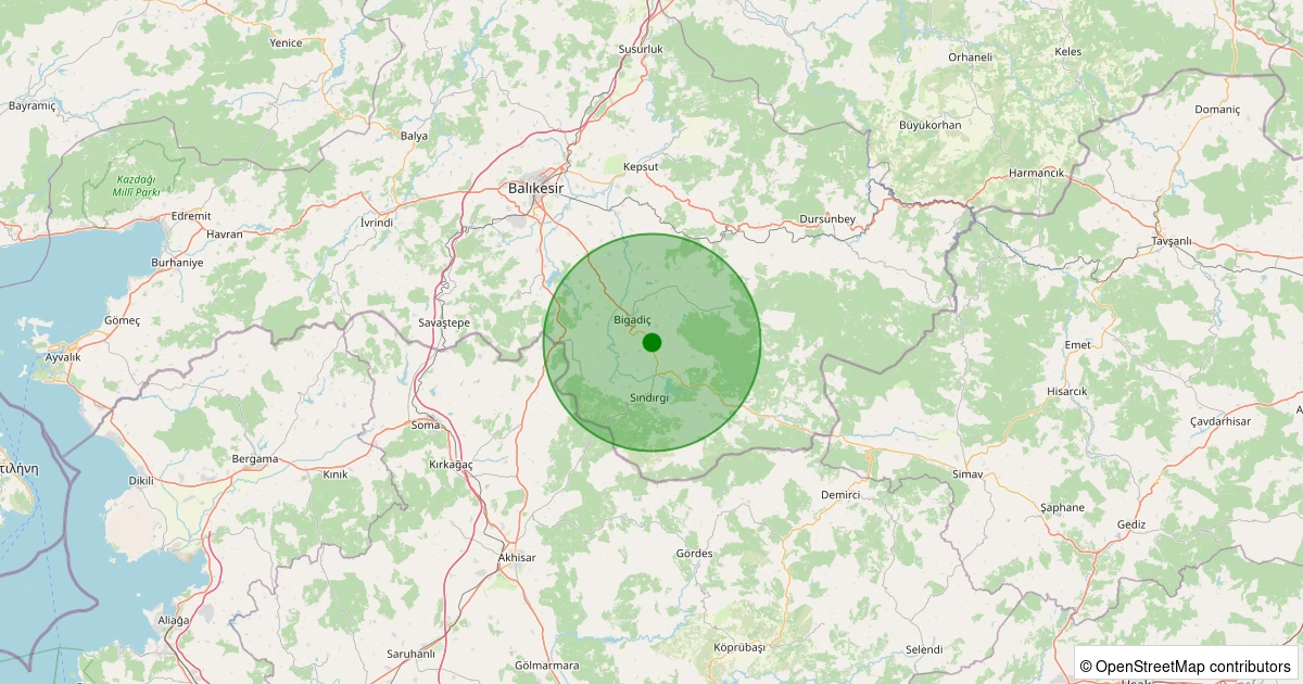 Son 7 gün içinde Sındırgı - Kocabey noktasından 100 km yarıçap içerisinde meydana gelen diğer depremler: