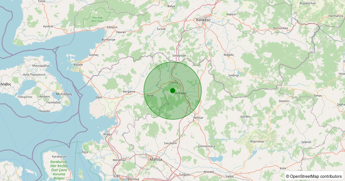 Son 7 gün içinde Kırkağaç - Çiftlik noktasından 100 km yarıçap içerisinde meydana gelen diğer depremler: