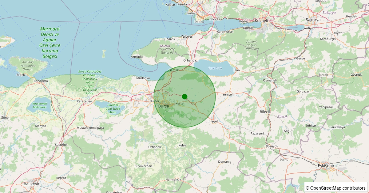 Son 7 gün içinde Gürsu noktasından 100 km yarıçap içerisinde meydana gelen diğer depremler: