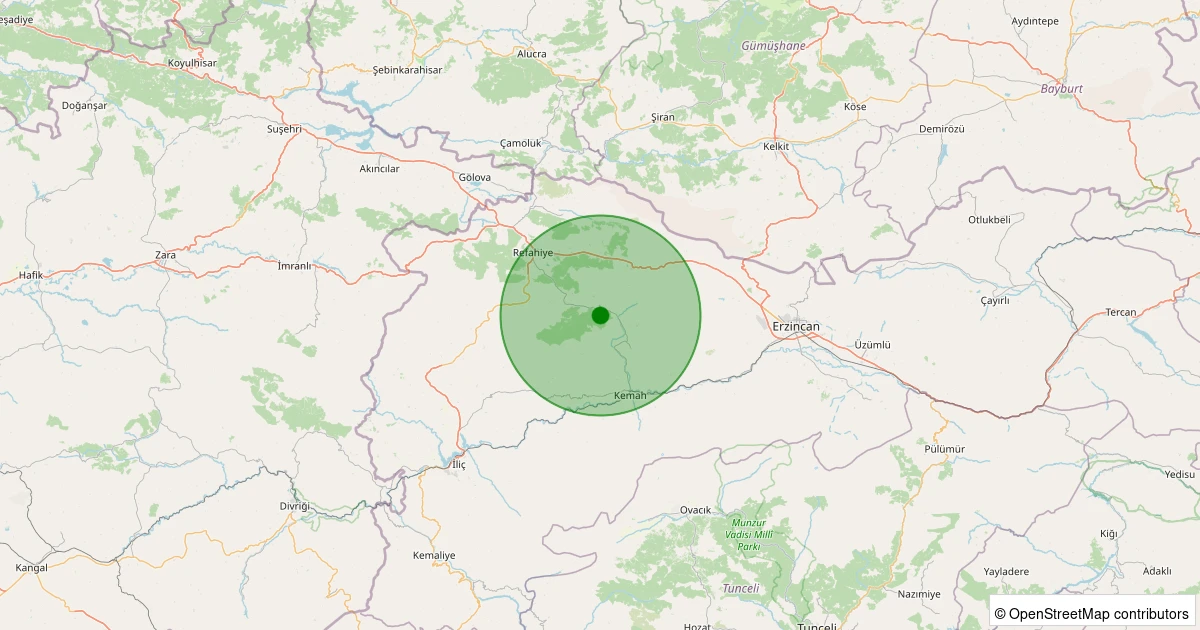 Son 7 gün içinde Refahiye - Ağmusa Köyü noktasından 100 km yarıçap içerisinde meydana gelen diğer depremler: