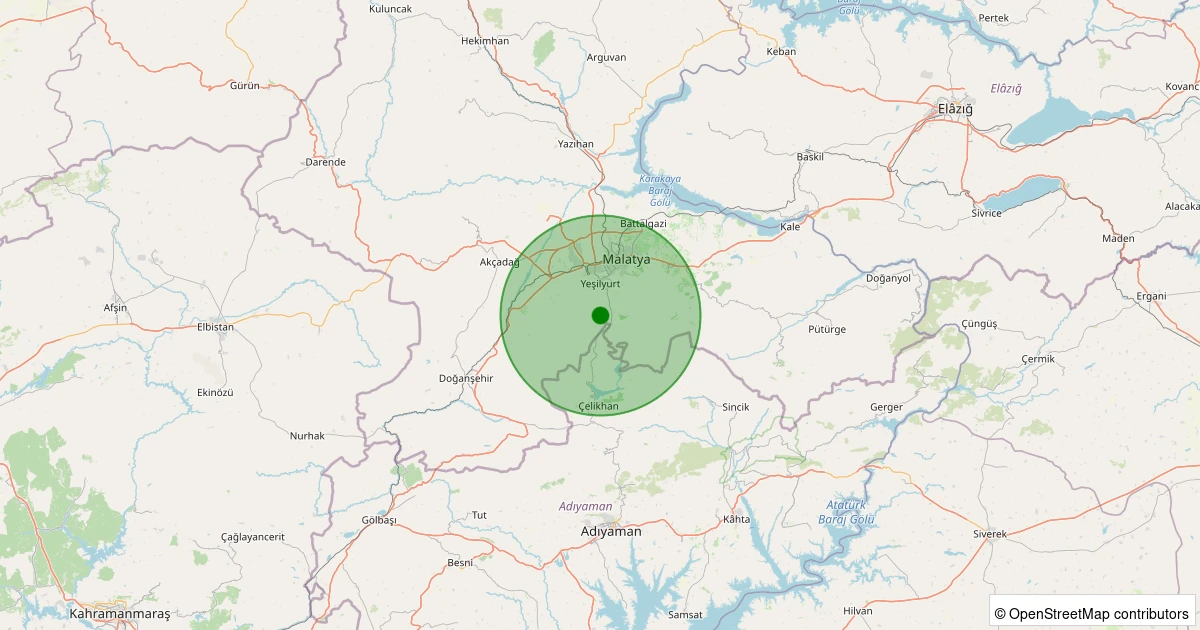 Son 7 gün içinde Yeşilyurt - Kadiruşağı noktasından 100 km yarıçap içerisinde meydana gelen diğer depremler: