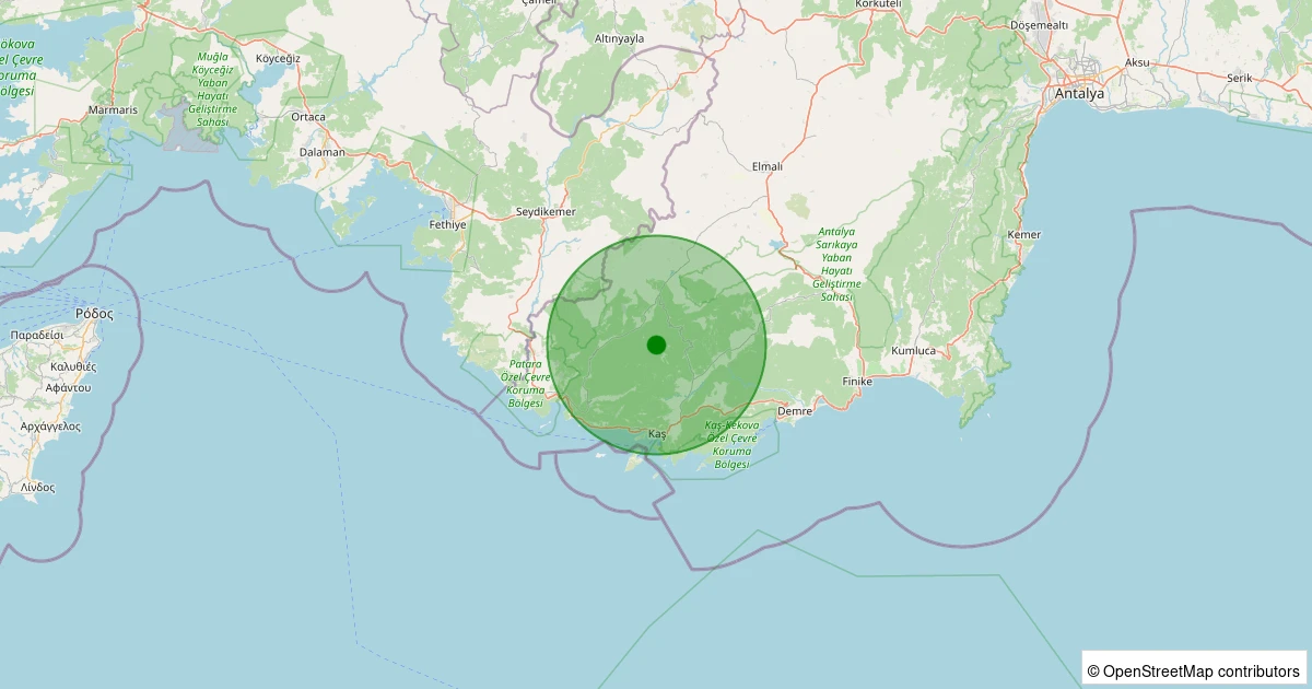 Son bir hafta içerisinde Antalya şehri Kaş noktasından 100 km yarıçap içerisinde toplamda 5 deprem kaydedilmiştir. Bu depremlerden en büyüğü 2.9 büyüklüğünde ve en sığ odaklısı 6.97 kilometre derinlikte gerçekleşmiştir.