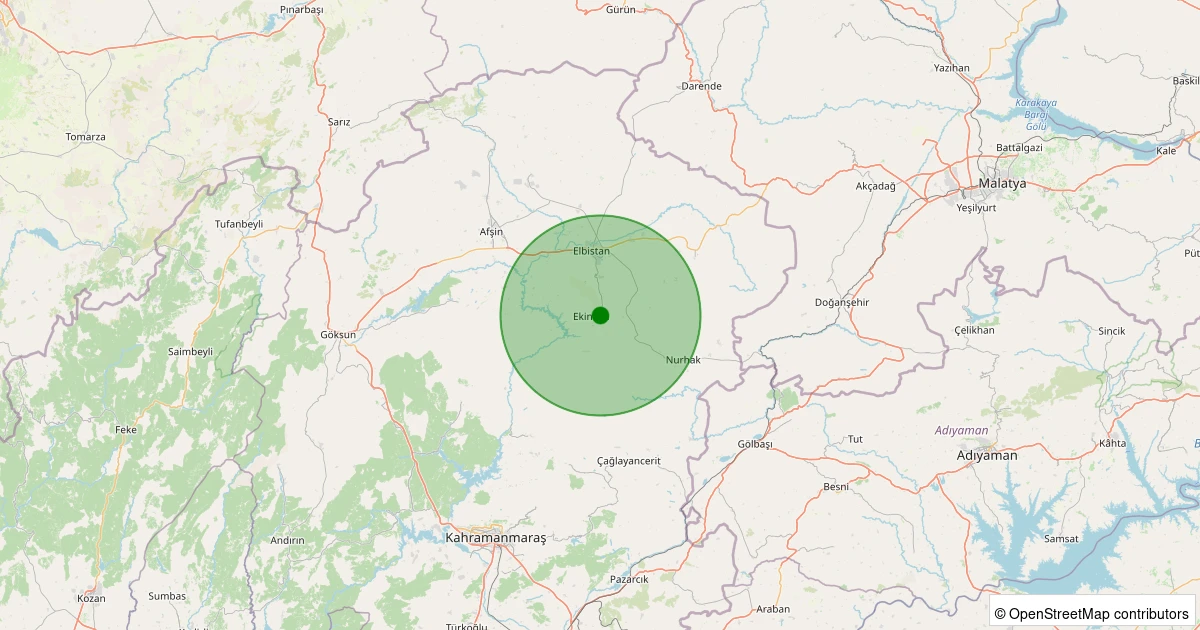 Son 7 gün içinde Ekinözü noktasından 100 km yarıçap içerisinde meydana gelen diğer depremler: