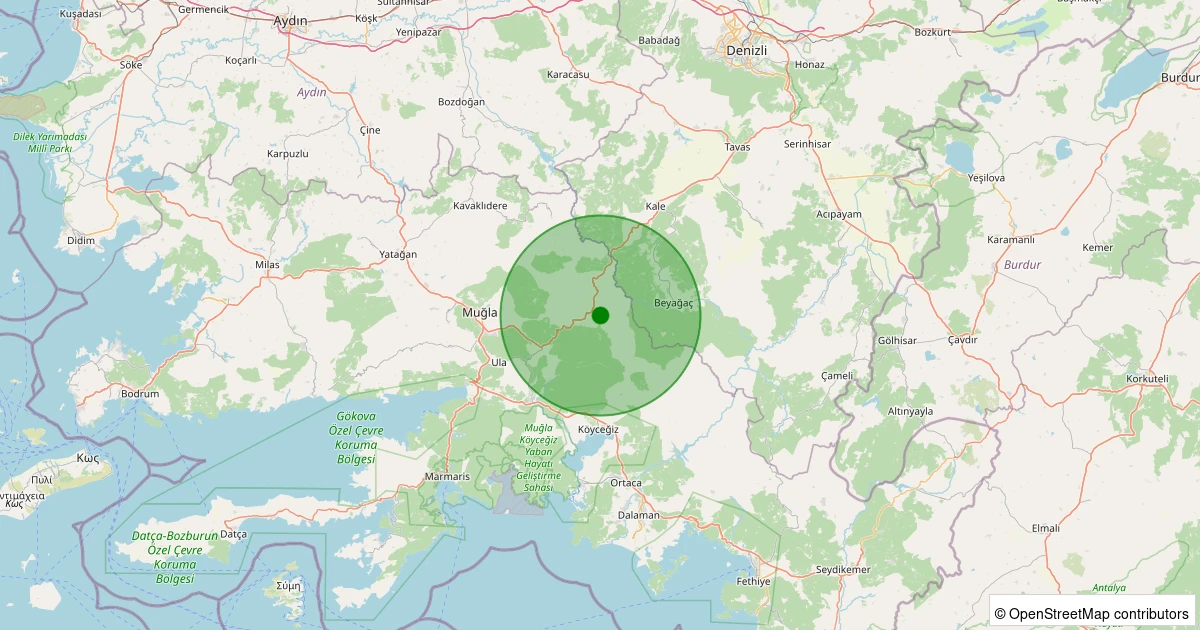 Son 7 gün içinde Menteşe - Çakmak noktasından 100 km yarıçap içerisinde meydana gelen diğer depremler: