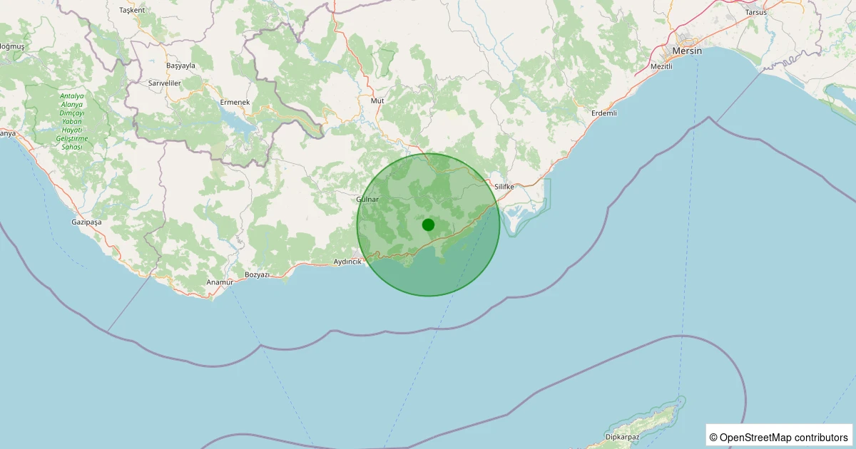 Son 7 gün içinde Silifke - Hacıishaklı noktasından 100 km yarıçap içerisinde meydana gelen diğer depremler: