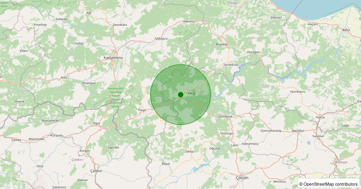 Son 7 gün içinde Kargı - Yeşilköy Köyü noktasından 100 km yarıçap içerisinde meydana gelen diğer depremler: