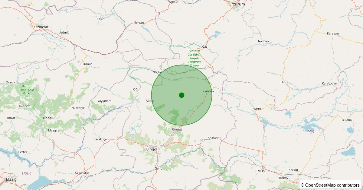 Son 7 gün içinde Karlıova - Karlıca Köyü noktasından 100 km yarıçap içerisinde meydana gelen diğer depremler: