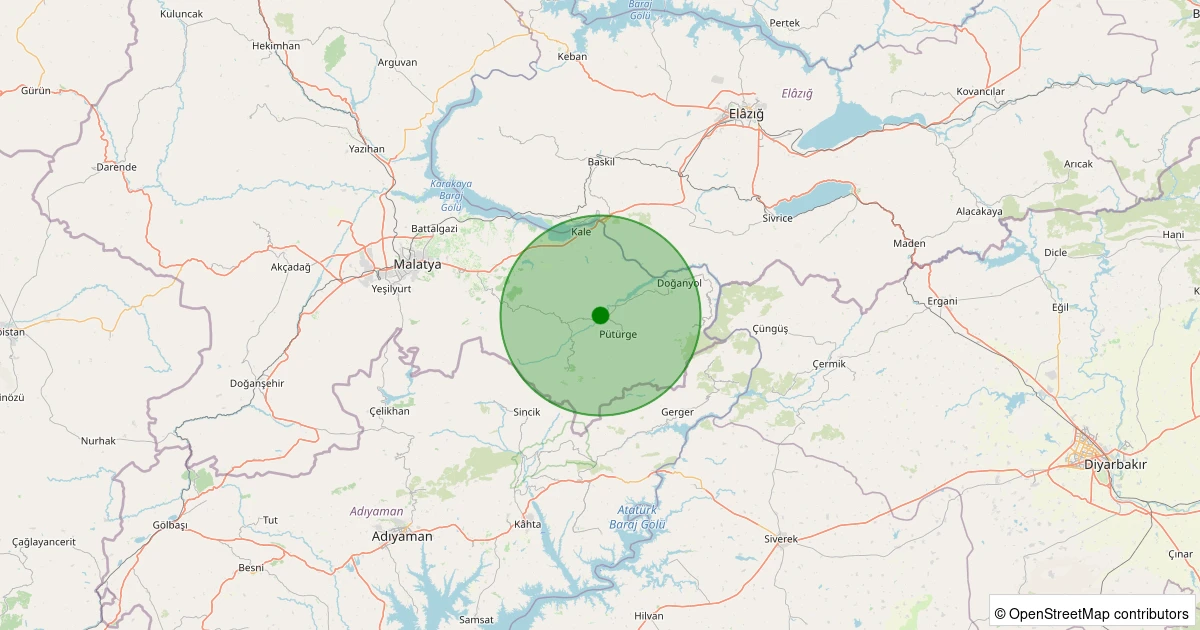 Son 7 gün içinde Pütürge - Pazarcık Köyü noktasından 100 km yarıçap içerisinde meydana gelen diğer depremler: