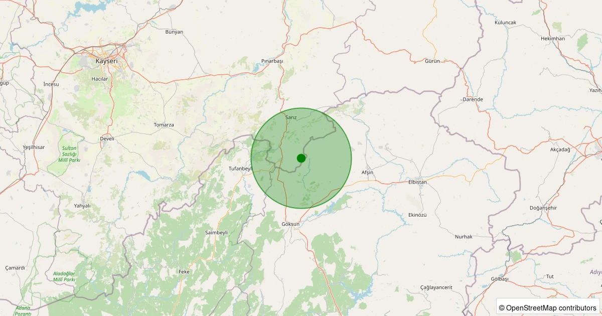 Son 7 gün içinde Sarız - Dayoluk Köyü noktasından 100 km yarıçap içerisinde meydana gelen diğer depremler: