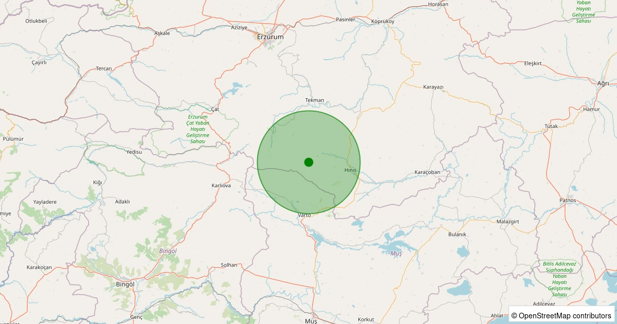 Son 7 gün içinde Hınıs - Güzeldere Köyü noktasından 100 km yarıçap içerisinde meydana gelen diğer depremler: