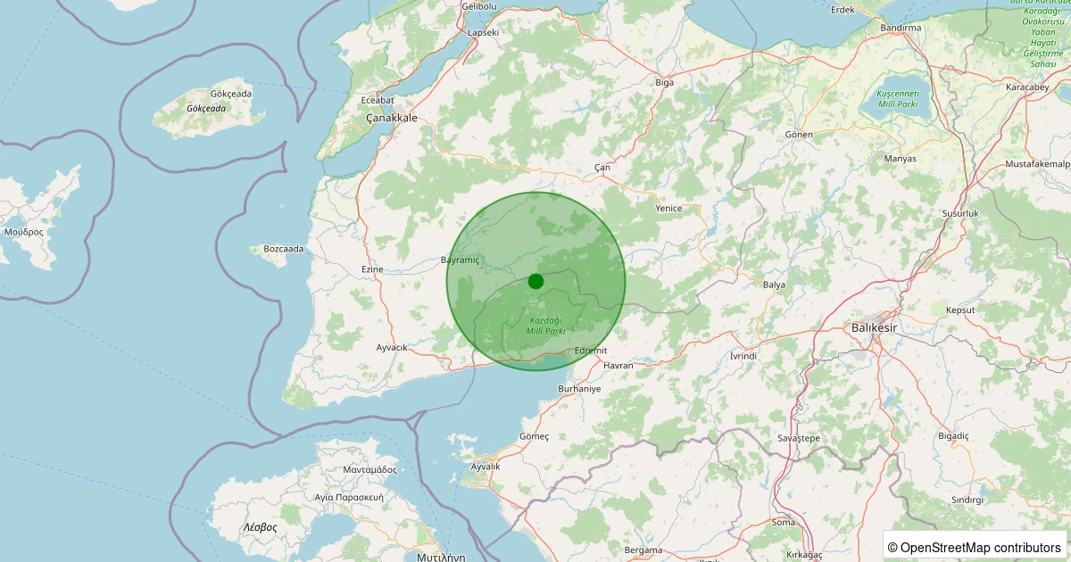 Son 7 gün içinde Bayramiç noktasından 100 km yarıçap içerisinde meydana gelen diğer depremler: