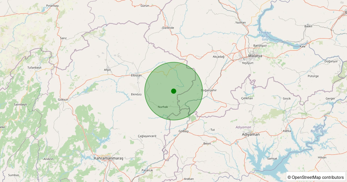 Son 7 gün içinde Elbistan - Karahasanuşağı Köyü noktasından 100 km yarıçap içerisinde meydana gelen diğer depremler: