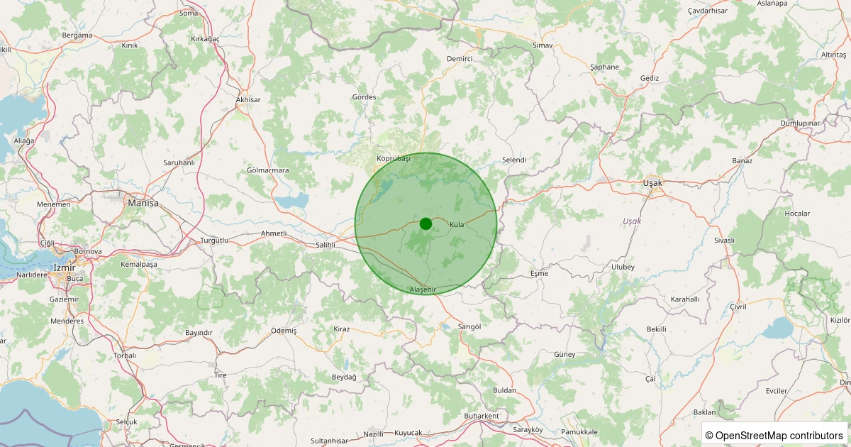 Son 7 gün içinde Kula - Gökçeören/Kale noktasından 100 km yarıçap içerisinde meydana gelen diğer depremler: