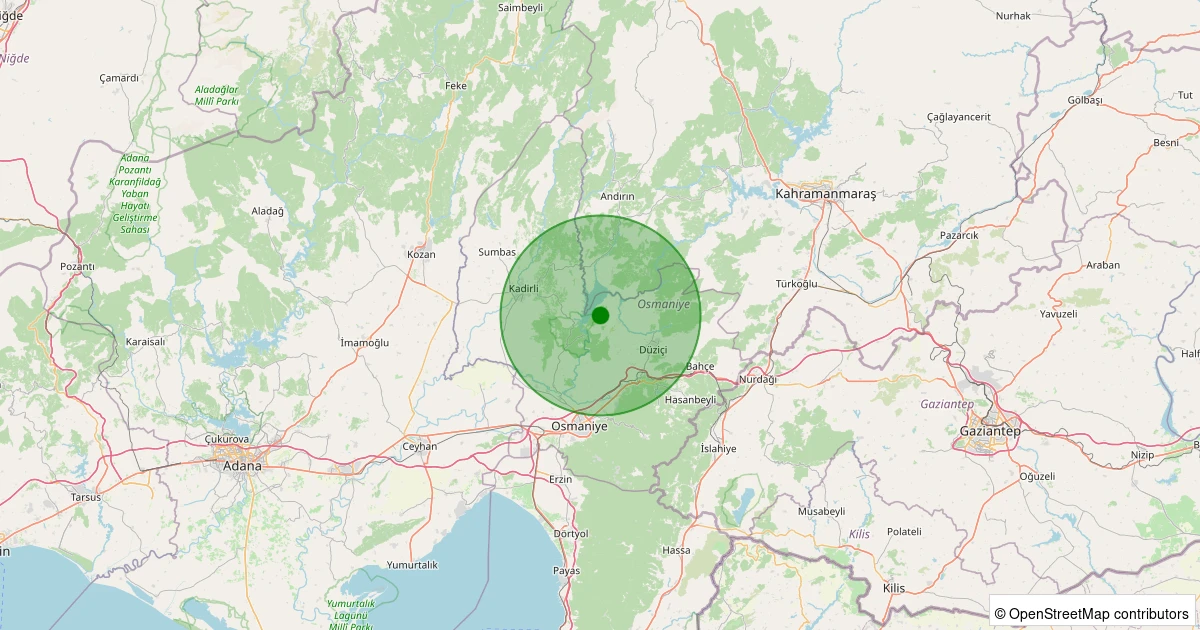 Son bir hafta içerisinde Osmaniye şehri Düziçi - Pirsultanlı Köyü noktasından 100 km yarıçap içerisinde toplamda 169 deprem kaydedilmiştir. Bu depremlerden en büyüğü 4.1 büyüklüğünde ve en sığ odaklısı 0.00 kilometre derinlikte gerçekleşmiştir.