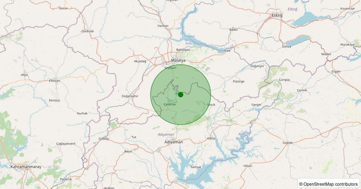 Son 7 gün içinde Çelikhan - Taşdamlar Köyü noktasından 100 km yarıçap içerisinde meydana gelen diğer depremler: