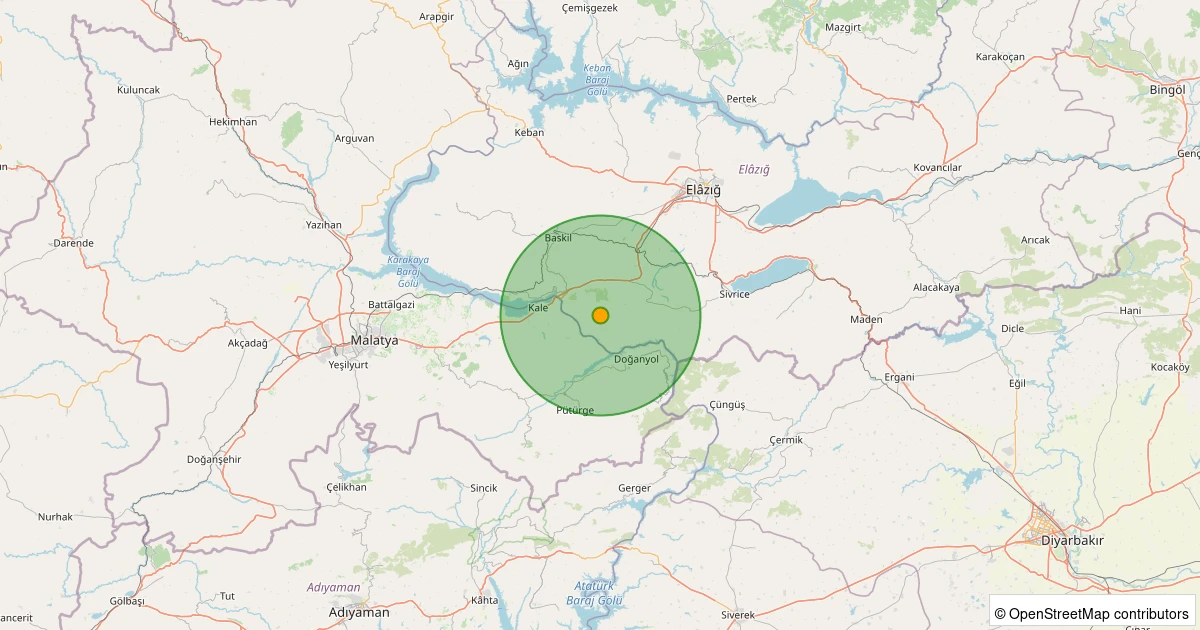Son 7 gün içinde Pütürge - Tatlıcak Köyü noktasından 100 km yarıçap içerisinde meydana gelen diğer depremler: