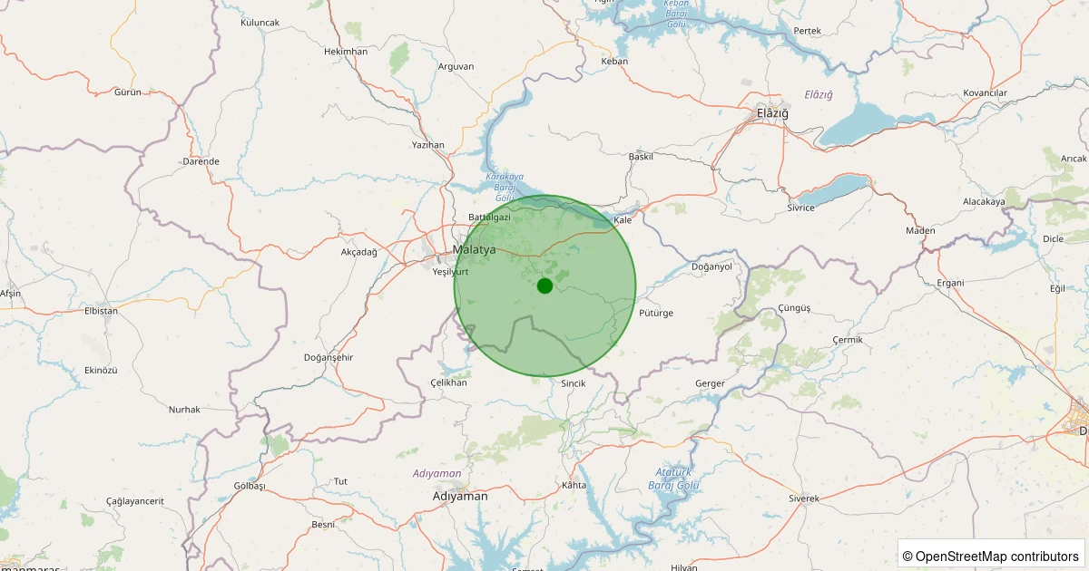 Son 7 gün içinde Battalgazi - Yaygın Köyü noktasından 100 km yarıçap içerisinde meydana gelen diğer depremler: