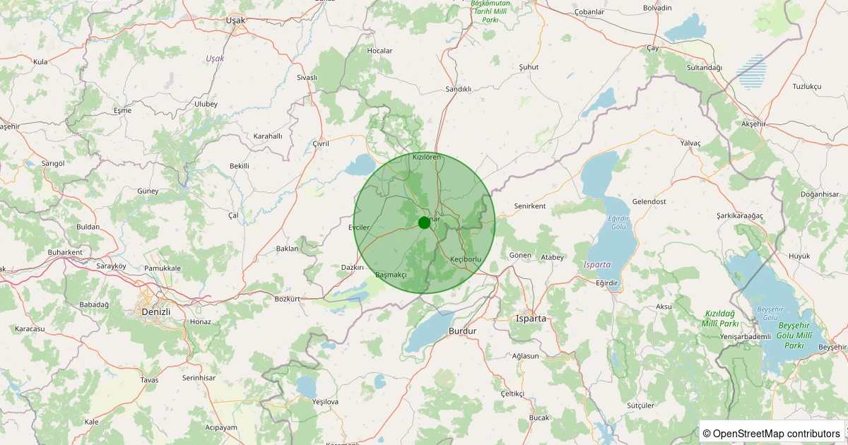 Son 7 gün içinde Dinar - Hürriyet noktasından 100 km yarıçap içerisinde meydana gelen diğer depremler: