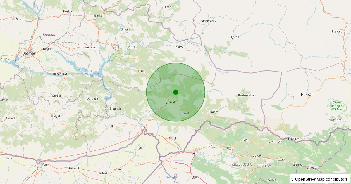 Son bir hafta içerisinde Şırnak şehri Merkez noktasından 100 km yarıçap içerisinde toplamda 2 deprem kaydedilmiştir. Bu depremlerden en büyüğü 1.5 büyüklüğünde ve en sığ odaklısı 7.00 kilometre derinlikte gerçekleşmiştir.