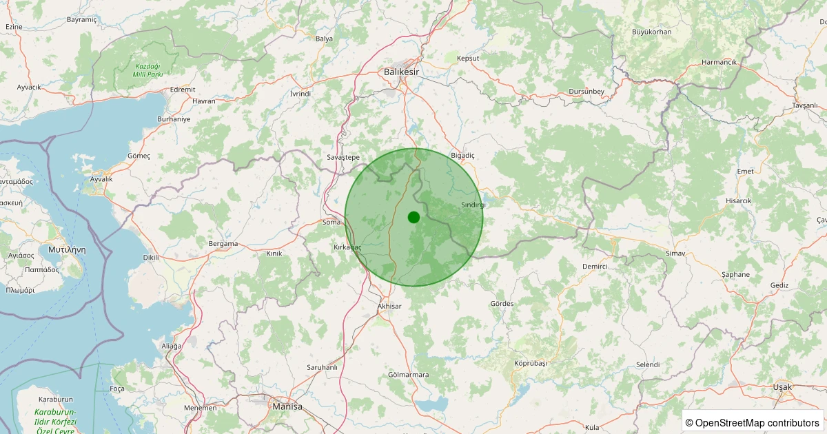 Son 7 gün içinde Sındırgı - Eğridere noktasından 100 km yarıçap içerisinde meydana gelen diğer depremler:
