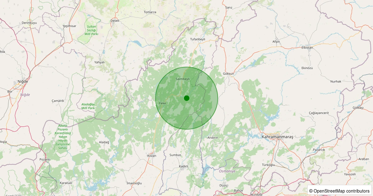 Son 7 gün içinde Saimbeyli - Yardibi noktasından 100 km yarıçap içerisinde meydana gelen diğer depremler: