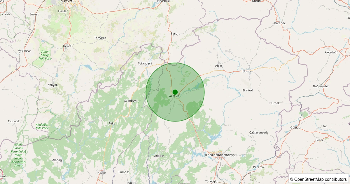 Son 7 gün içinde Göksun noktasından 100 km yarıçap içerisinde meydana gelen diğer depremler: