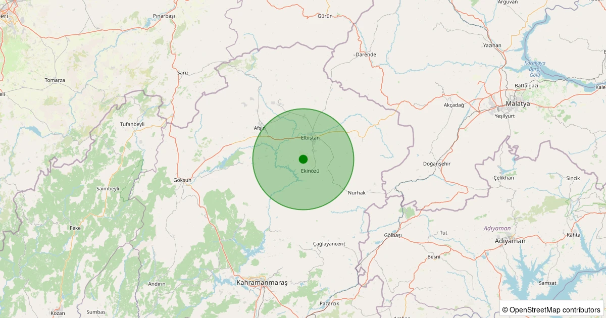 Son 7 gün içinde Ekinözü - Ortaören noktasından 100 km yarıçap içerisinde meydana gelen diğer depremler: