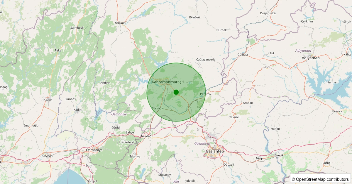 Son 7 gün içinde Dulkadiroğlu - Çınarlı noktasından 100 km yarıçap içerisinde meydana gelen diğer depremler: