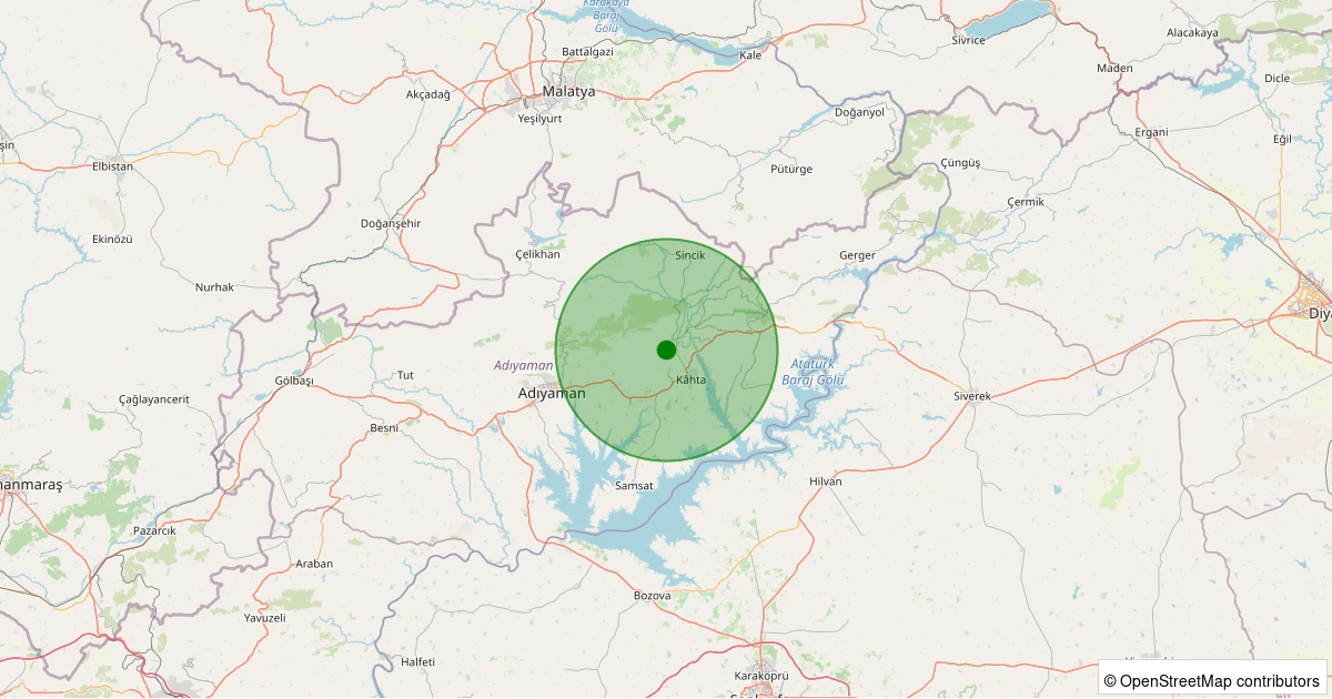 Son 7 gün içinde Kahta - Yelkovan Köyü noktasından 100 km yarıçap içerisinde meydana gelen diğer depremler: