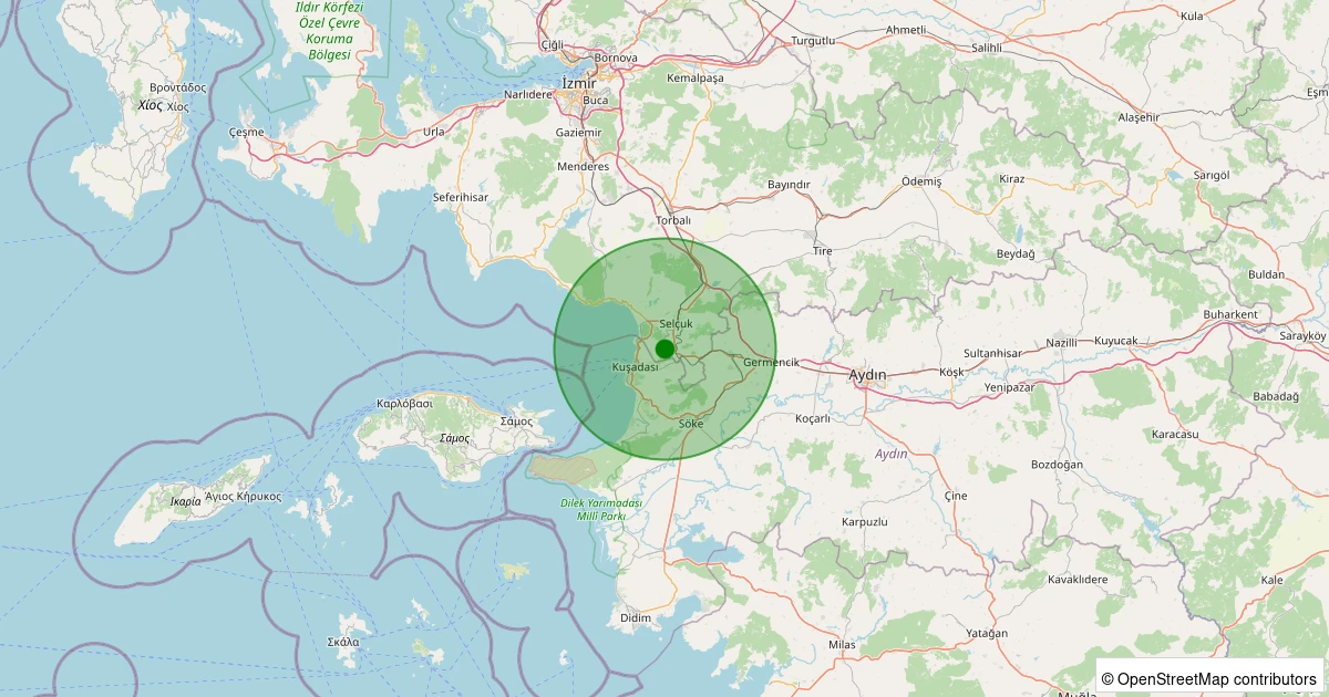 Son 7 gün içinde Selçuk - Sultaniye noktasından 100 km yarıçap içerisinde meydana gelen diğer depremler: